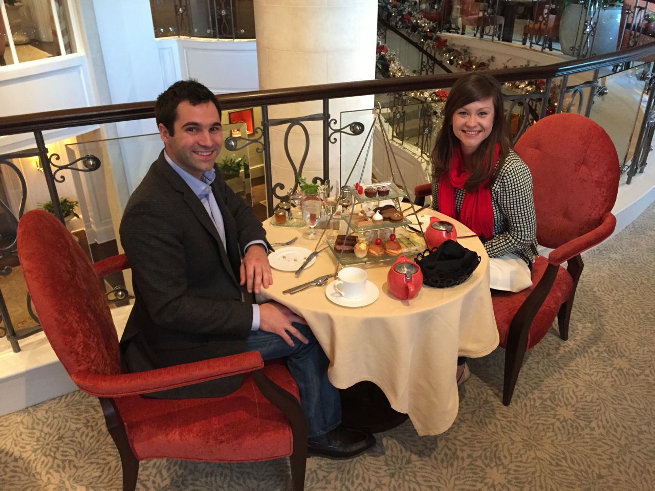 For the sixth stop, they hopped into the Mercedes and drove to the St. Regis hotel in Buckhead for Afternoon Tea. They enjoyed various fine teas, champagne and an assortment of mini quiches, finger sandwiches and sweet treats. Jim told Brittany that the St. Regis reminded him of the time that they celebrated one of their anniversaries with brunch at the St. Regis. He explained that the hotel represented how Brittany has made him appreciate some fancier things in life, which is another reason why he loves her.